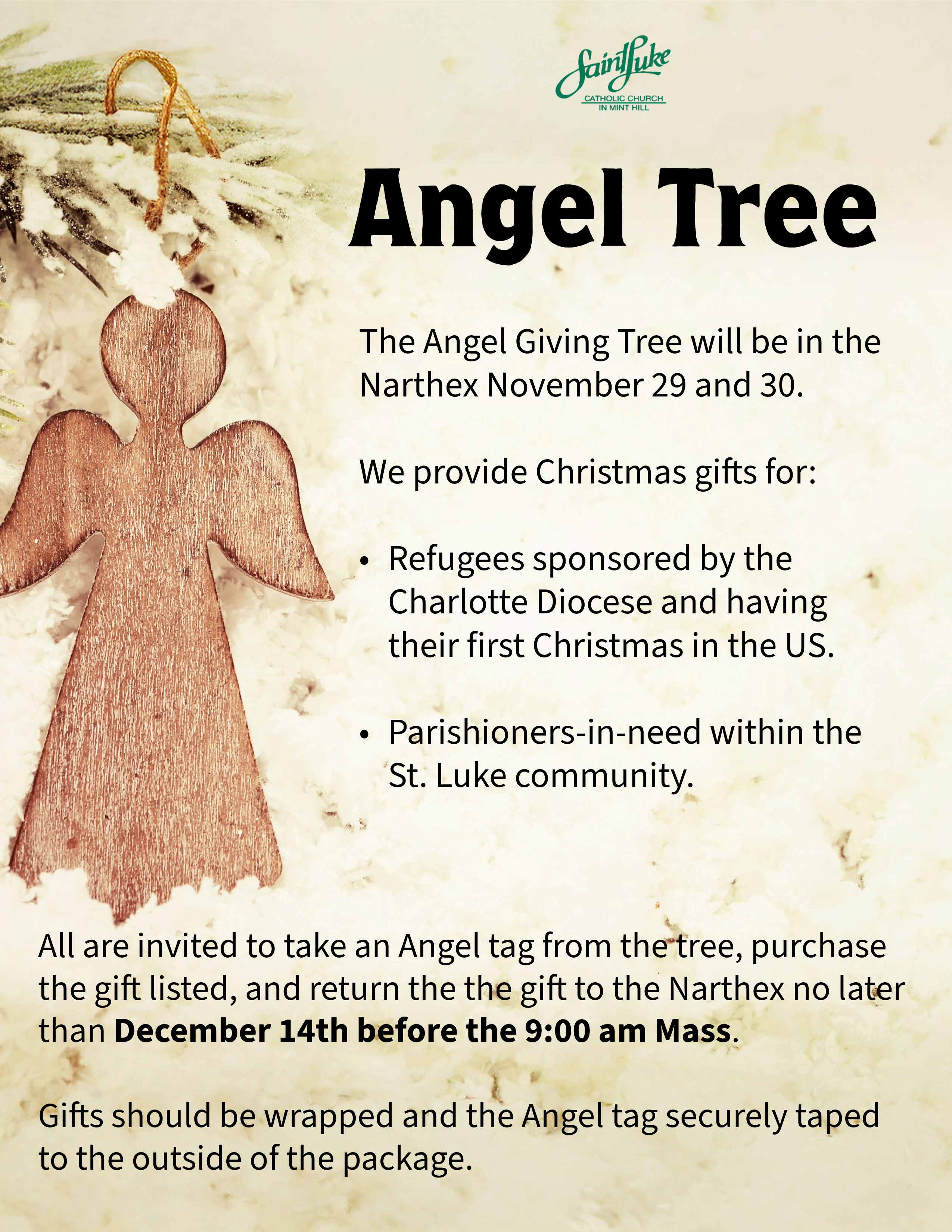 St. Luke is a welcoming and spiritual Parish located in Mint Hill, NC. If you are interested in celebrating your faith or developing a deeper and more meaningful relationship with God, please join us. We have plenty of opportunities for both fellowship and friendship. We hope to see you soon!